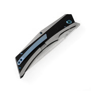 Aurelien wanted a functional folding knife, a knife that can be taken into any pocket to perform simple tasks as well as more demanding tasks while trying to have a contemporary design that differs from what can usually be seen. He wanted a knife with a shape that allows great versatility in adapting blade shapes, a knife on which you can mount a tanto blade as well as a drop point blade, while respecting the original contemporary spirit of the knife