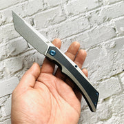 ✔ Stonewashed CPM-S35VN Tanto blade with excellent edge retention.