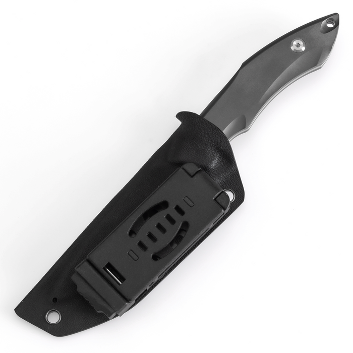 This everyday carry fixed knife comes with a durable, high-quality kydex taco sheath designed to securely hold the blade in place, ensuring safe storage and protection.