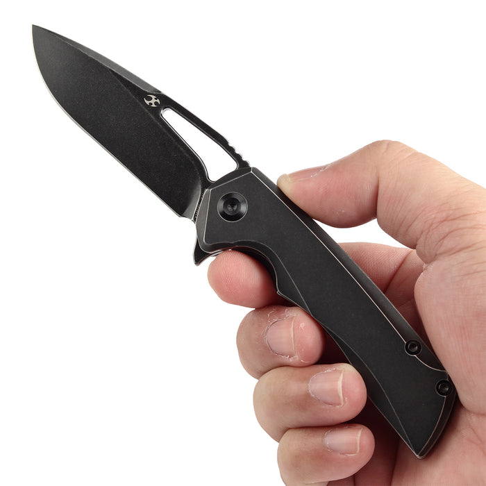 KANSEPT Mini Kryo Thumb Hole Blackwash Titanium Handle (2.9" CPM S35VN Blade) Kim Ning Design-K2001S1