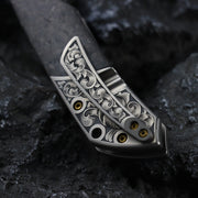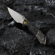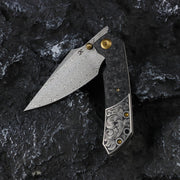 KANSEPT Special Custom Hand Engraved Fenrir Beadblasted Titanium and Shred Carbon Fiber Handle (3.48'' Damascus Blade) Greg Schob Design