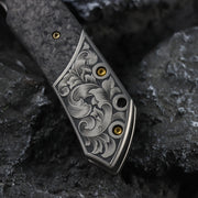 * The pattern remains fixed, we only offer two distinct carving options as illustrated. Hand-carving is only performed on the handle and pocket clip, as shown in the reference photos.