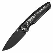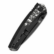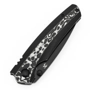 KANSEPT Thumb Stub Raven Blackwash Titanium, Black and White Nebula Carbon Fiber(3.13" CPM 20CV Blade) with Black Bird Blades Design-K2109A1