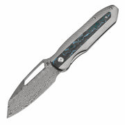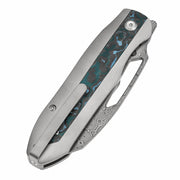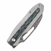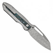 KANSEPT Thunderhead Thumb Hole Stonewashed Titanium with Artic Storm Carbon Fiber Handle (3.58" Damascus Blade) with K.C. Spiron Design-K1106A5