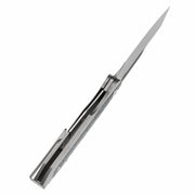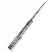 The milled titanium pocket clip ensures secure, low-profile carry, complementing the knife's streamlined design. Perfectly balanced for both tactical use and executive EDC, blending functionality with sophisticated styling.