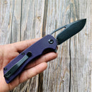 - Purple G10 handle for a smooth gripping surface that is comfortable in the pocket or hand.