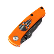 ✔Orange G10 with Skull Print handle for a smooth gripping surface that is comfortable in the pocket or hand.