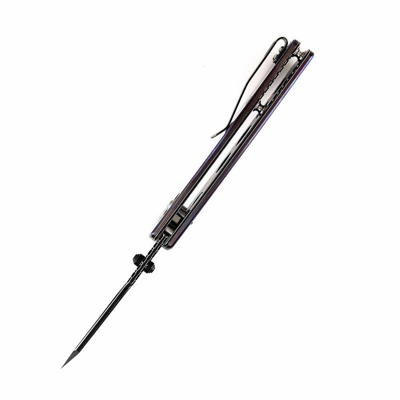 KANSEPT Main Street Thumb Studs/Crossbar Lock Knife Timascus Handle (3.36''CPM 20CV Blade) Dirk Pinkerton Design-K1015M1