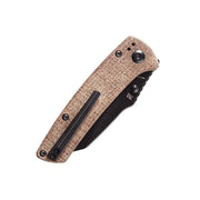 • Ergonomic Brown Micarta handle for a smooth gripping surface that is comfortable in the pocket or hand.