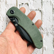 ✔Green Micarta handle for a smooth gripping surface that is comfortable in the pocket or hand.