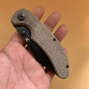 ✔Brown Canvas Micarta handle for a smooth gripping surface that is comfortable in the pocket or hand.