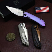 Versatile Harpoon CPMS35VN/Damascus Blade The Fenrir features a classic harpoon-style CPMS35VN/Damascus blade, with the broad curved belly of the blade standing out as a core highlight. The curvature of this belly is precisely calculated: when slicing, it fits the surface of ingredients to reduce resistance, enabling even and neat cuts; when piercing, it allows for precise force application to prevent blade wobble, providing users with a stable and controlled operating experience.
