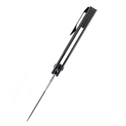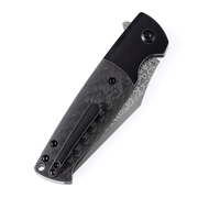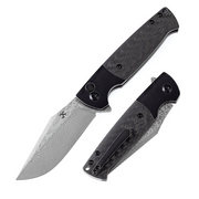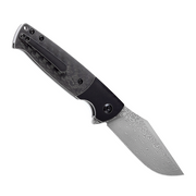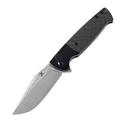 Shikari SBL Button Lock K2027D1 Damascus Blade Black Stonewashed Titanium +Twill Carbon Fiber Handle with Morgan Koens Dessign