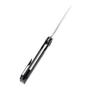 - Black Stonewashed Titanium +Twill Carbon Fiber handle with titanium bolster for a smooth gripping surface that is comfortable in the pocket or hand.