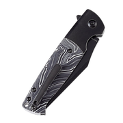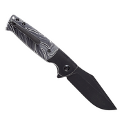 - Black Stonewashed Titanium +Black White Gmascus handle with titanium bolster for a smooth gripping surface that is comfortable in the pocket or hand.