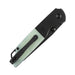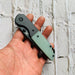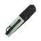 ✔Black Anodized Aluminum Bolster +Jade G10 handle for a smooth gripping surface that is comfortable in the pocket or hand.