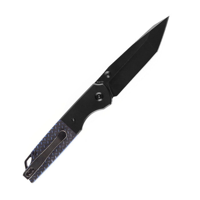 KANSEPT Warrior T1005T1 Black TiCn Coated and Stonewashed Tanto D2 Blade Black Anodized Aluminum Bolster + Black and Blue G10 Handle with Kim Ning Design