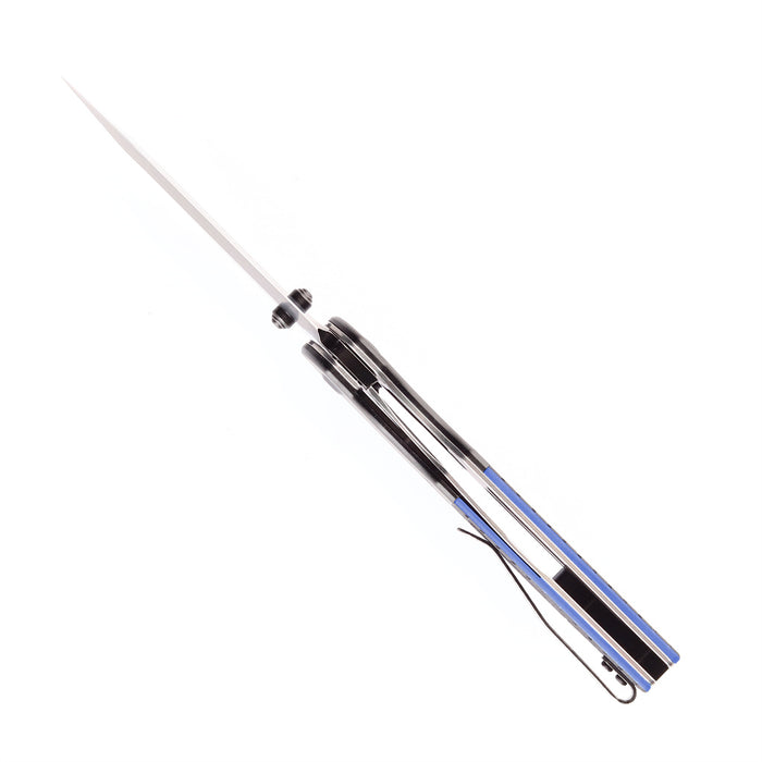 ✔Black Anodized Aluminum Bolster + Black and Blue G10 handle for a smooth gripping surface that is comfortable in the pocket or hand.