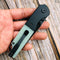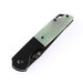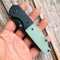 ✔Black Anodized Aluminum Bolster +Jade G10 handle for a smooth gripping surface that is comfortable in the pocket or hand.
