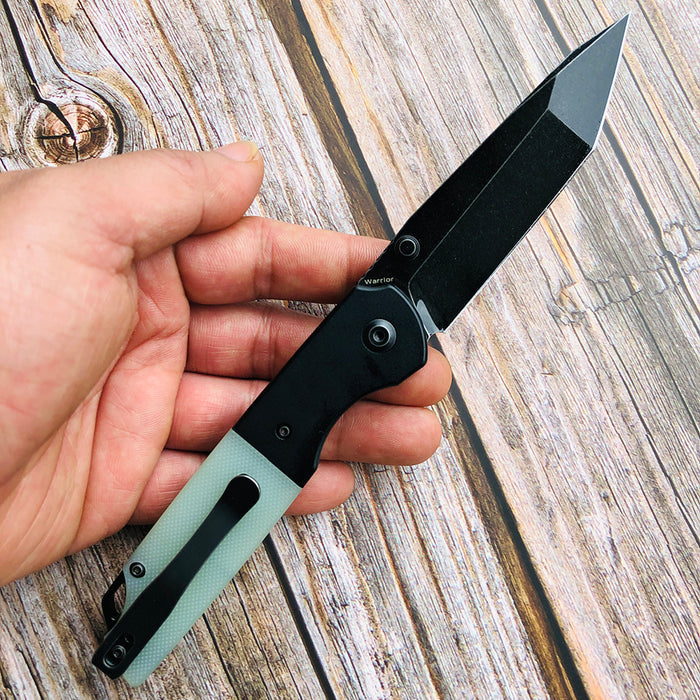 KANSEPT Warrior T1005T4 Black TiCn Coated and Stonewashed Tanto D2 Blade Black Anodized Aluminum Bolster +Jade G10 Handle with Kim Ning Design