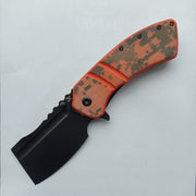 Eye-catching Design: The combination of an orange and camouflage G10 handle not only provides a visually striking appearance but also ensures a comfortable and secure grip.